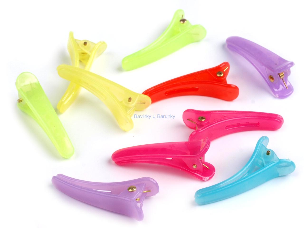 Plastové sponky ve světlých barvách, lehce transparentní. Pinetkový typ se zoubky. Vhodná zejména pro dětské jemné vlásky.