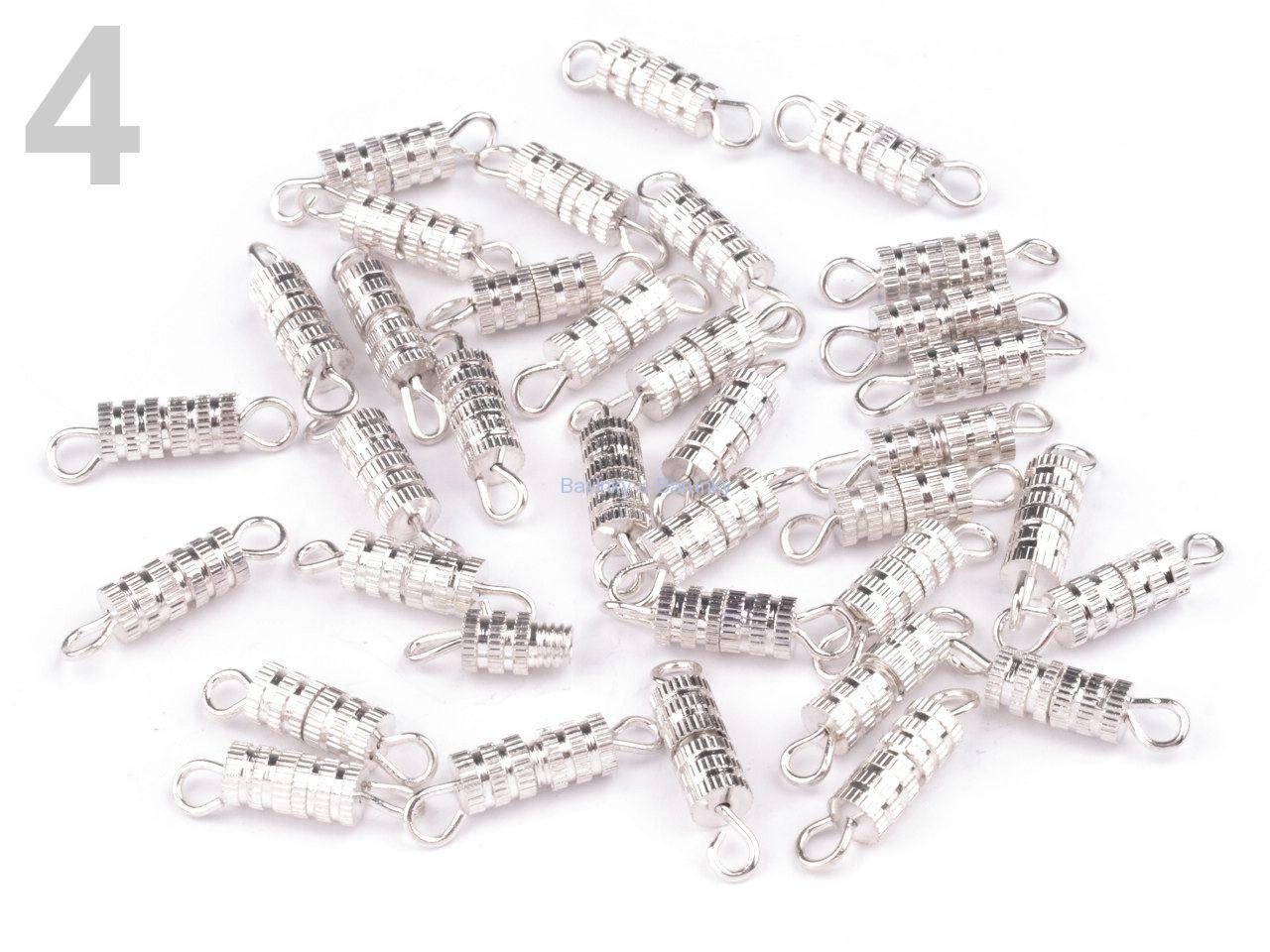 Jeden pár obsahuje dva díly šroubovacího zapínání, které se do sebe zašroubují. Tradiční, spolehlivé zapínání, které využijeme především u náhrdelníků. Velká očka u zapínání usnadní napojení ketlovaného očka u ketlovaných šperků, stejně snadno se napojí i kalota či očko pružiny.