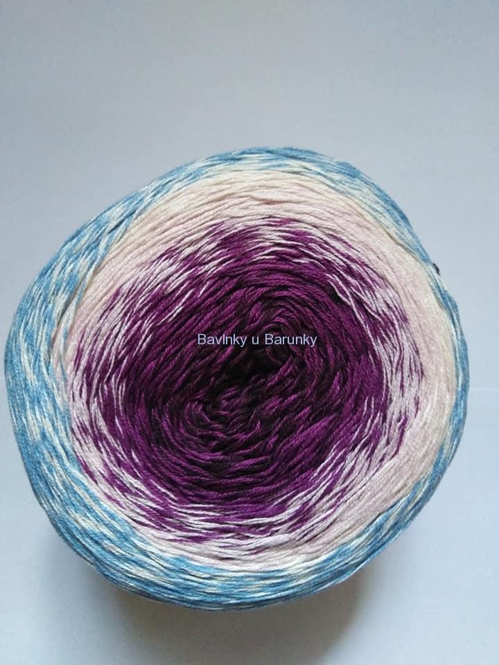 Velmi kvalitní příze, spletená ze čtyř nitek, kombinovaná s krásnými dlouhými přechody mezi barvami. Složení z organické bavlny a antipilling akrylu jí předurčují pro jarní šály, šátky, oblečení pro děti i dospělé, čepičky, ponča, tuniky i hračky.
