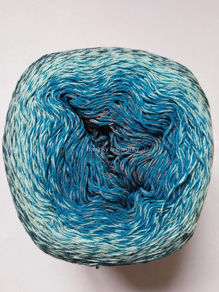 Jemná, nadýchaná čtyřnitka kombinovaná s krásnými dlouhými přechody mezi barvami. Složená z kvalitní recyklované bavlny, vhodná pro jarní šály, šátky, oblečení pro děti i dospělé, čepičky, ponča, tuniky i hračky.