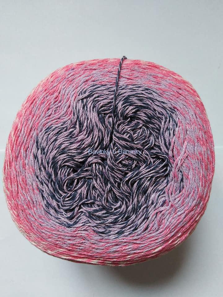 Jemná, nadýchaná čtyřnitka kombinovaná s krásnými dlouhými přechody mezi barvami. Složená z kvalitní recyklované bavlny, vhodná pro jarní šály, šátky, oblečení pro děti i dospělé, čepičky, ponča, tuniky i hračky.
