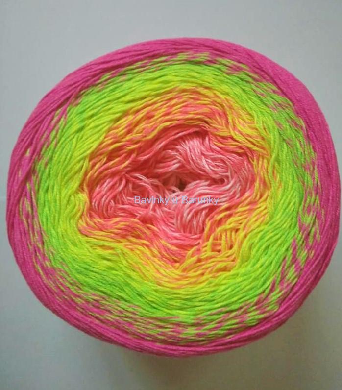 Tenčí směsová čtyřnitková příze v neonových barvách. Je samovzorovací a hodí se především