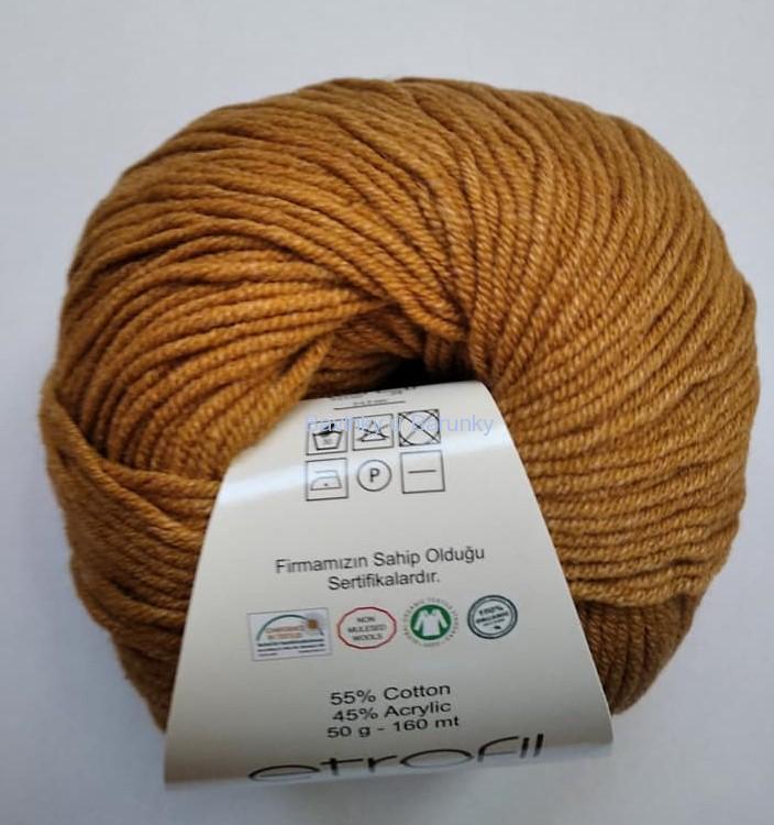Příze Etrofil Jeans je velmi příjemná směsová příze, vhodná jak pro svetříky, čepičky a další doplňky, tak na hračky. Díky složení má jak bavlněný efekt, tak jemnost na omak.