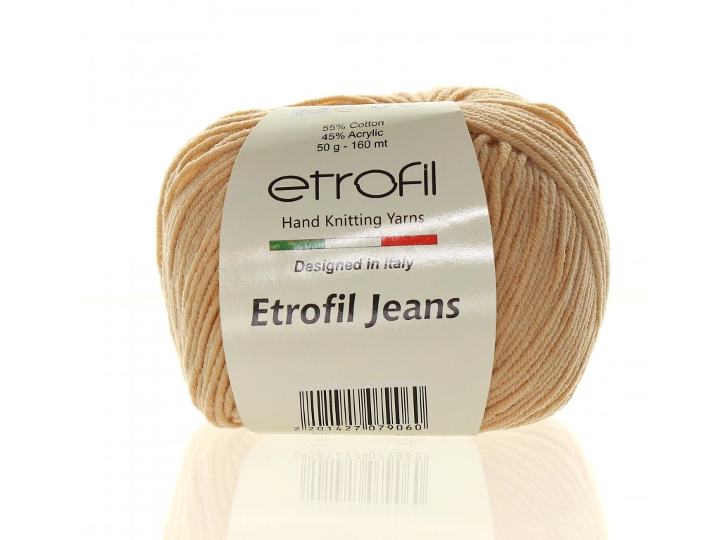 Příze Etrofil Jeans je velmi příjemná směsová příze, vhodná jak pro svetříky, čepičky a další doplňky, tak na hračky. Díky složení má jak bavlněný efekt, tak jemnost na omak.