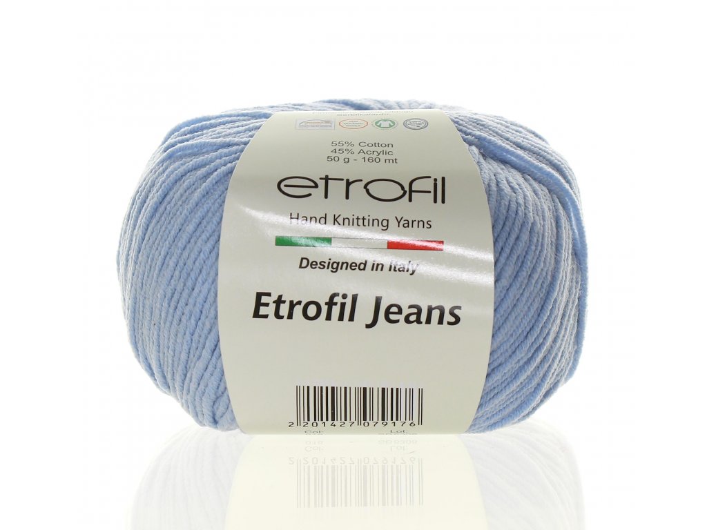 Příze Etrofil Jeans je velmi příjemná směsová příze, vhodná jak pro svetříky, čepičky a další doplňky, tak na hračky. Díky složení má jak bavlněný efekt, tak jemnost na omak.