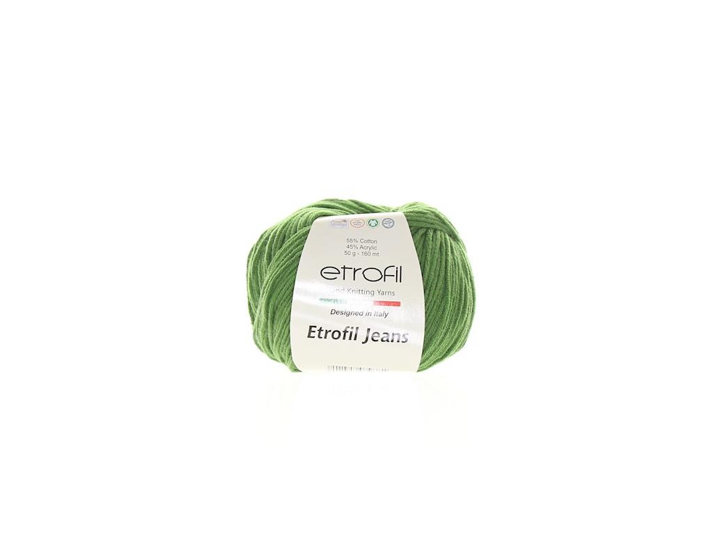 Příze Etrofil Jeans je velmi příjemná směsová příze, vhodná jak pro svetříky, čepičky a další doplňky, tak na hračky. Díky složení má jak bavlněný efekt, tak jemnost na omak.